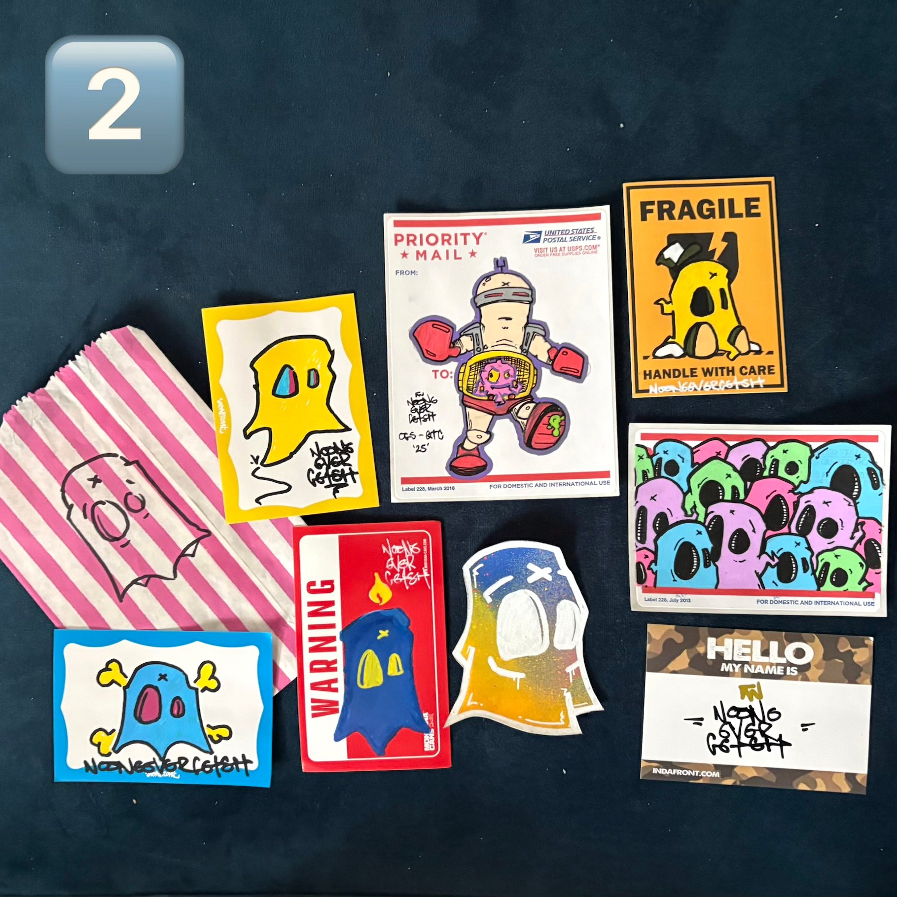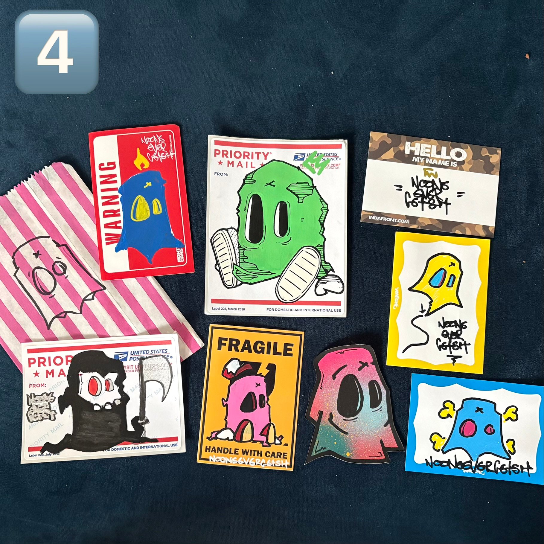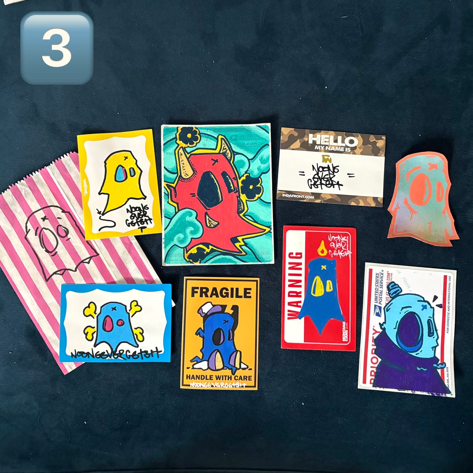 Hand drawn/painted sticker set by graffiti style artist nooneevergetsit.